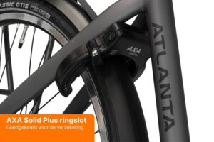 Bovendien heeft de Altec Atlanta een verende voorvork. Oneffenheden in het wegdek worden zo perfect opgevangen. Onmisbaar op een luxe uitgevoerde e-bike! Zo’n mooie fiets raden wij altijd aan te verzekeren tegen diefstal. Gelukkig is dit mogelijk door het veilige en betrouwbare Art gekeurde AXA Solid plus ringslot. Neem er voor de zekerheid wel altijd een kettingslot bij.