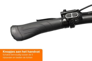 Naast de elektrische onderdelen op de fiets, zitten er ook 7 Shimano Nexus versnellingen op de fiets. Hiermee schakel je soepel tussen de trapweerstanden voor een aangename rijervaring. De kabels van zowel de versnellingen als de remmen lopen net afgewerkt door het frame. Ziet er niet alleen netjes uit, maar is ook onderhoudsvriendelijk!