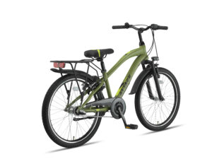 Kleur: Army groen Wielmaat: 24” Framemaat: 30 Frame: Staal Versnelling: Shimano Nexus 3 Remmen: V-brakes + terugtrap Verlichting: Batterij verlichting Voorvork: Verende voorvork Stuurpen: Verstelbare stuurpen Velgen: Dubbelwandig aluminium Standaard: Zijstandaard Slot: Ringslot Aandrijving: Kettingaandrijving Bel: Ja