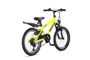 De Altec Dakota is een stoere jongensfiets met 7 versnellingen, een stevig stalen frame en veilige v-brake handremmen. Dit model is erg populair onder jongens door onder andere het stoere uiterlijk.Altec Dakota Jongensfiets 20 inch 7v Neon Lime heeft een uiterlijk dat wel veel weg heeft van een mountainbike. Met deze fiets zullen de avonturiers willen blijven rijden. Doordat het frame van staal is raden we je aan de fiets zoveel mogelijk binnen te stallen. Dit komt omdat oxidatie niet volledig is uit te sluiten. Daar tegenover staat wel dat dit materiaal enorm stevig is!