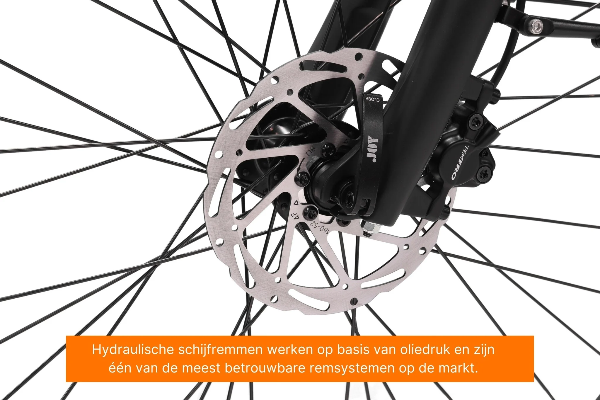 Hydraulische remmen: Dit remsysteem is veruit het meest krachtige en veilige remsysteem die fijn te doseren is. Minimale inspanning, maximale grip