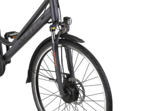 Met een krachtige 518Wh accu en een betrouwbare voorwielmotor is de Altec Delta E-Bike perfect voor wie lange afstanden wil afleggen of heuvelachtig terrein wil trotseren. De voorwielmotor zorgt dat het voorwiel wordt aangedreven en je dus naar voren getrokken wordt. De accu heeft een groot bereik en kan gemakkelijk worden opgeladen. Kortom, de Altec Delta E-Bike is een uitstekende keuze voor wie op zoek is naar een betrouwbare, krachtige en comfortabele elektrische fiets.