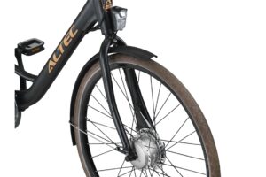 De Altec Fania is een betrouwbare en veilige elektrische moederfiets. Deze e-bike is namelijk speciaal ontworpen om moeder en kind veilig en comfortabel van a naar b te brengen. Denk bijvoorbeeld aan de extra lage instap en de extra ruimte tussen de zadel en het stuur. Zo kun je niet alleen makkelijk opstappen, maar heb je ook nog genoeg ruimte om comfortabel te kunnen fietsen met een kinderzitje voorin.