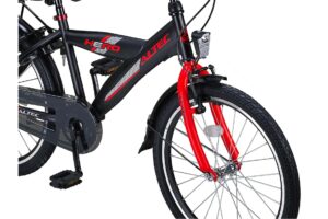 Altec Hero 22 inch kinderfiets jongens – Met deze kinderfiets is het een waar plezier om te rijden! De stevige fiets kan makkelijk tegen een stootje. Dit komt mede door het stevige frame waarover deze beschikt. Dit is namelijk volledig gemaakt van staal. De voorvork is vast, wat er voor zorgt dat dit een zeer comfortabele fiets is. Hierdoor worden oneffenheden in het wegdek goed opgevangen. De fiets beschikt over batterijverlichting, deze zorgt voor zichtbaarheid in het donker. Uiteraard is er ook aan de veiligheid van de fiets en fietser gedacht. De Altec Hero heeft namelijk 2 velgremmen én een terugtraprem. De velgen zijn lichtgewicht en goed bestand tegen roest. Ze bestaan namelijk uit dubbelwandig aluminium.