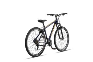 Kleur: Dark Blue Wielmaat: 29” Framemaat: 46 Frame: Aluminium Versnelling: Shimano 21 speed Remmen: V-brakes Velgen: Dubbelwandig aluminium Standaard: Zijstandaard