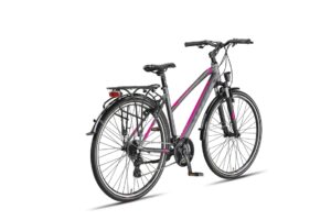 Met de Altec Legarda behoud je de volledige controle in alle omstandigheden. Of je nu graag door de bossen rijdt, over het strand of gewoon naar werk, het kan allemaal! Dit komt dankzij de fijne eigenschappen waarover deze topper beschikt. Neem bijvoorbeeld het aluminium frame. Dit type frame is heerlijk licht, sterk en roestvrij. De velgen zijn gemaakt uit dubbelwandig aluminium. Dit betekend dat de kans op een slag in het wiel erg klein wordt. Maak je graag sprongen met je nieuwe mountainbike? Dan is een vervende voorvork onmisbaar! Met dit onderdeel worden schokken opgevangen. Zo rijd je ook over ruwe wegen erg comfortabel. Ga je er graag langer op uit? Ook dat kan prima met de legarda! Deze trekking fiets beschikt namelijk over 24 handige versnellingen.