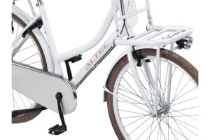 Met de Altec Love Transportfiets 28 inch 53cm 3v Ivory bent u niet alleen fijn, maar ook zeer veilig onderweg. Zowel u als uw kindje kunnen genieten van de fietstocht en de buitenlucht. Het frame bestaat uit stevig staal en heeft een unieke vorm. De groter afstand tussen het zadel en stuur maken namelijk dat u genoeg ruimte overhoudt om makkelijk te kunnen sturen. Het stuur zelf is breder dan op een standaard fiets om de stuurbewegingen soepel te houden. Ter bevordering van de veiligheid zit er zowel een V-brake als Rollerbrake handrem op de Altec Love. Om het fietscomfort op lange afstanden ook te verhogen, is de Altec Love uitgerust met 2 Shimano versnellingen. Hiermee heeft u de complete controle over de trapzwaarte van uw fiets. Door de LED verlichting op de voor- en achterkant van de fiets, rijdt u ook in het donker veilig.