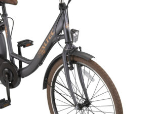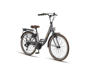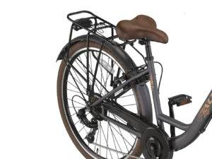 Kleur: Mat Grey Wielmaat: 26” Framemaat: 40 Frame: Staal Versnelling: Shimano 7 speed Remmen: V-brakes Verlichting: Batterij verlichting Stuurpen: Verstelbare stuurpen Velgen: Dubbelwandig aluminium Standaard: Zijstandaard Slot: Ringslot Bel: Ja