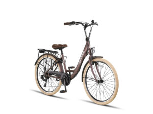 Kleur: BRUIN Wielmaat: 26” Framemaat: 40 Frame: Staal Versnelling: Shimano 7 speed Remmen: V-brakes Verlichting: Batterij verlichting -
