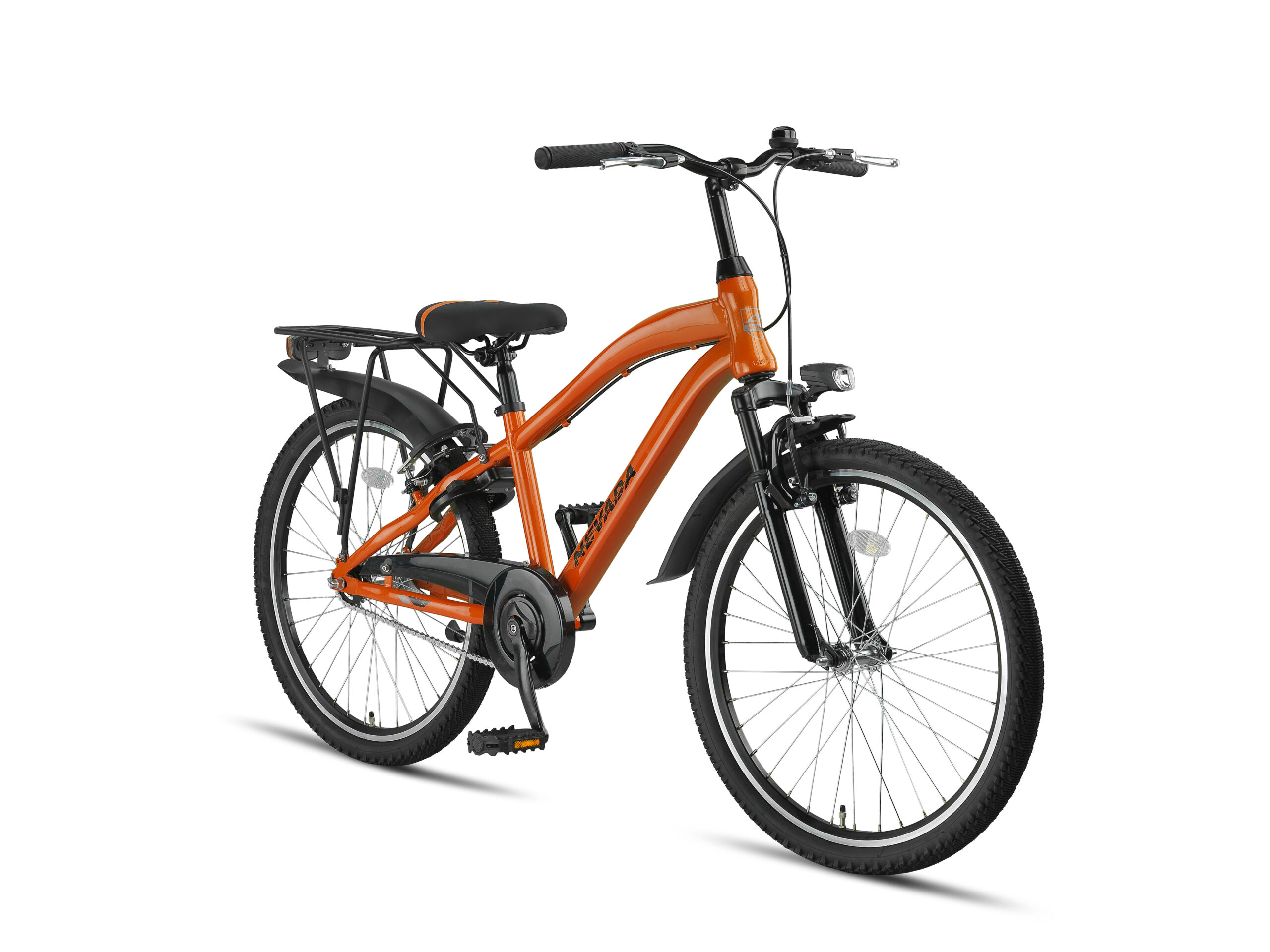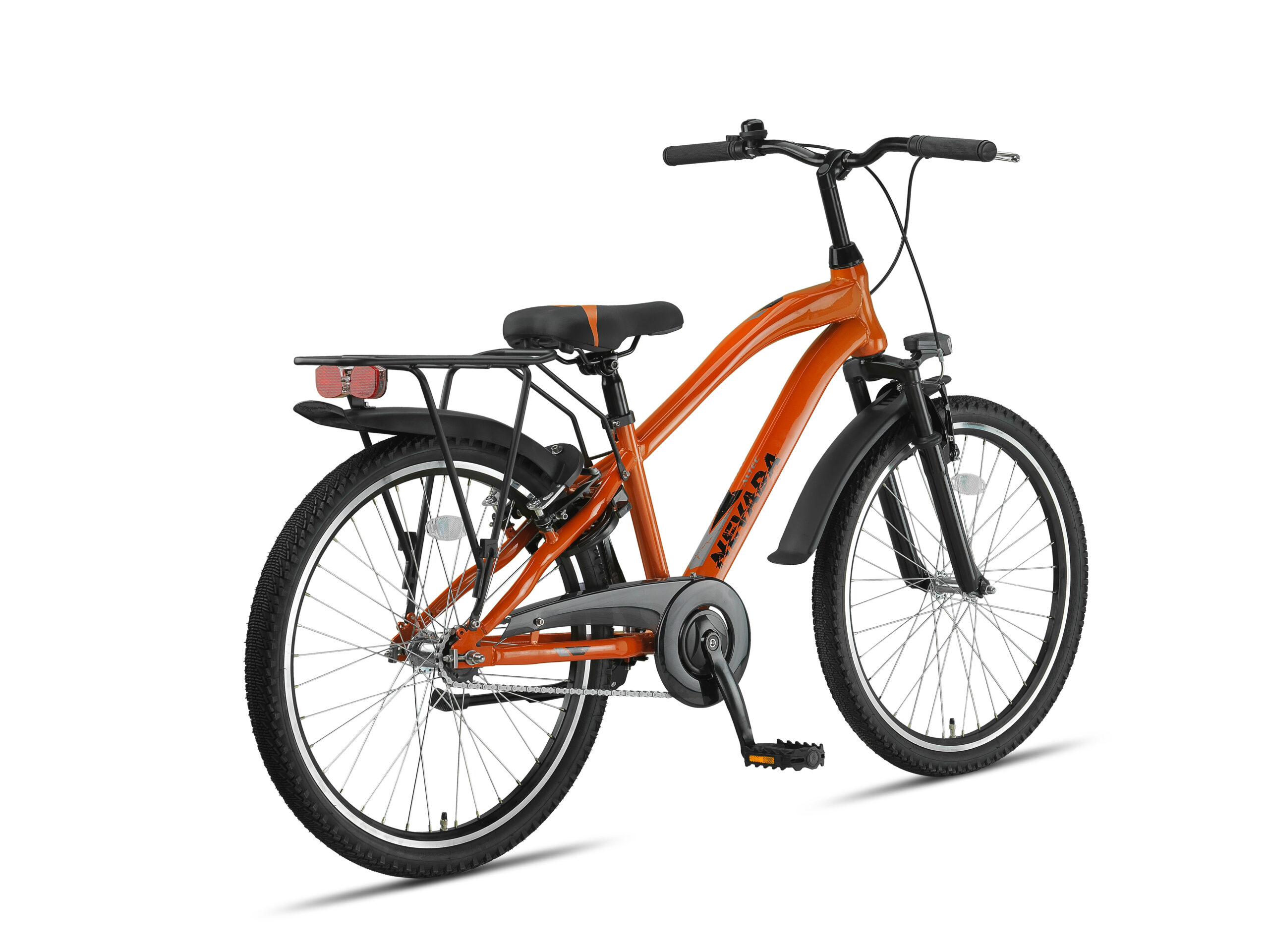 Kleur: neon oranje Wielmaat: 24” Framemaat: 30 Frame: Staal Remmen: V-brakes + terugtrap Verlichting: Batterij verlichting Voorvork: Verende voorvork Stuurpen: Verstelbare stuurpen Velgen: Dubbelwandig aluminium Standaard: Zijstandaard Slot: Ringslot Aandrijving: Kettingaandrijving Bel: Ja