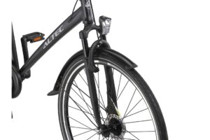 Uw fietscomfort onderweg wordt aanzienlijk verhoogd door de volgende onderdelen. De verende voorvork en verstelbare stuurpen. De voorvork vangt de meeste schokken en oneffenheden in het wegdek goed op. Door de verstelbare stuurpen kunt u precies de fietshouding aannemen die u wenst. Vooral erg fijn op de wat langere ritten. Uiteraard zijn op zo’n stadsfiets ook goede remmen nodig. Gelukkig beschikt de Altec Omega Plus over betrouwbare Rollerbrake handremmen. Deze zorgen er voor dat u veilig vaart kunt minderen. In het donker blijft u goed zichtbaar en dus veilig. De batterij verlichting zorgt hiervoor!