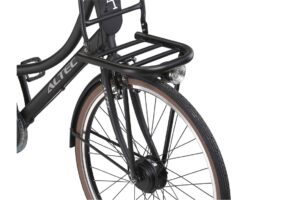 De Altec Sakura is niet voor niets een veelzijdige transportfiets. Dankzij de handige voordrager ben je altijd in staat om net dat beetje meer mee te nemen. Of het nou een krat, mand, sporttas of een boodschappentas is, voor de Sakura is het allemaal geen enkel probleem! Het stuurslot zorgt dat je het stuur kan vergrendelen in de parkeerstand. Zo blijft het stuur en voorwiel recht blijft staan. Ook heeft de Sakura een dubbelpotig standaard. Hiermee blijft je fiets evenwichtig overeind.