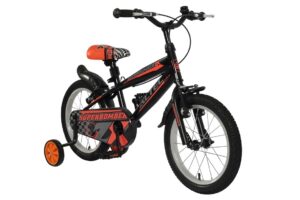 Altec Superbomber Jongensfiets 16 inch is een sportieve uitgevoerd fiets voor jongens in de leeftijdsgroep vanaf 4 jaar. Het is een fantastische fiets met zijwielen om de fijne kneepjes van het fietsen onder de knie te krijgen. Dat kan snel als uw kind vaak fietst en dan is er een moment dat u de zijwieltjes er gemakkelijk af kunt halen. Als uw zoon dan gegroeid is, kan het zadel op de nieuwe lengte ingesteld worden. Het zadel is in hoogte te verstellen en het stuur heeft een vaste stuurpen. De Superbomber Jongensfiets 16 inch is een droomfiets voor elke sportieve jongen. De originele prints op de gesloten kettingkast, stalen frame en op het zadel maken deze fiets uniek om te zien. De Umit Superbomber Jongensfiets 16 inch ziet er geweldig uit, maar biedt ook praktisch gemak en zeker optimaal comfort. Aan het stuur zijn twee V-brakes bevestigd, maar er is eveneens een manier om te remmen met de praktische terugtraprem. De spatborden zijn kort om het sportieve design te benadrukken, maar zorgen er wel voor dat opspattend water de kleding niet bereikt. De Umit Superbomber Jongensfiets 16 inch heeft op de banden een grof profiel voor een uitstekende grip.