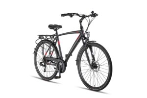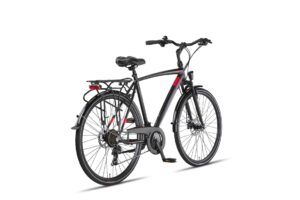 Altec Ventura Trekking Schijfremmen Herenfiets 28 inch 21v – Met deze luxe stadsfiets is rijden altijd comfortabel en een waar plezier! De Altec Ventura beschikt dan ook over hoogwaardige onderdelen. Te beginnen bij het aluminium frame. Dit is niet alleen lichtgewicht, maar ook goed bestand tegen roest. De velgen bestaan ook uit aluminium, dubbelwandig zelfs. De 21 Shimano versnellingen zorgen er voor dat langere afstanden geen enkel probleem zijn om af te leggen. U beschikt zo altijd over de juiste trapzwaarte en snelheid. Afremmen is belangrijk op een fiets. De verende voorvork zorgt er voor dat schokken goed worden opgevangen. Zo bent u verzekerd van een aangename rit. De batterij verlichting zorgt er voor dat u ook in het donker zichtbaar en dus veilig blijft.