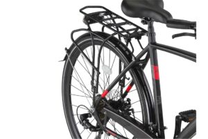 Kleur: Black-Red Wielmaat: 28” Framemaat: 56 Frame: Aluminium Versnelling: Shimano 21 speed Remmen: Schijfremmen Verlichting: Batterij verlichting Voorvork: Verende voorvork Stuurpen: Verstelbare stuurpen Velgen: Dubbelwandig aluminium Standaard: Zijstandaard Slot: Geen slot aanwezig