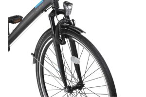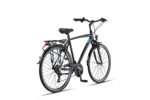 Kleur: Black-Blue Wielmaat: 28” Framemaat: 56 Frame: Aluminium Versnelling: Shimano 21 speed Remmen: V-brakes Verlichting: Batterij verlichting Voorvork: Verende voorvork Stuurpen: Verstelbare stuurpen Stuurvergrendeling: Geen stuurvergrendeling Voordrager: Geen voordrager ReflectieOpBanden: Nee Velgen: Dubbelwandig aluminium Standaard: Zijstandaard