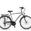 Altec Ventura Trekking V-Brakes Herenfiets 28 inch 21v – Met deze luxe stadsfiets is rijden altijd comfortabel en een waar plezier! De Altec Ventura beschikt dan ook over hoogwaardige onderdelen. Te beginnen bij het aluminium frame. Dit is niet alleen lichtgewicht, maar ook goed bestand tegen roest. De velgen bestaan ook uit aluminium, dubbelwandig zelfs. De 21 Shimano versnellingen zorgen er voor dat langere afstanden geen enkel probleem zijn om af te leggen. U beschikt zo altijd over de juiste trapzwaarte en snelheid. Afremmen is belangrijk op een fiets. De verende voorvork zorgt er voor dat schokken goed worden opgevangen. Zo bent u verzekerd van een aangename rit. De batterij verlichting zorgt er voor dat u ook in het donker zichtbaar en dus veilig blijft.