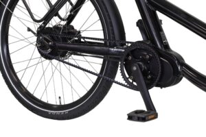 Deze geavanceerde bakfiets is uitgerust met een traploos Enviolo versnellingssysteem, dat uitzonderlijk comfortabel schakelt. Dankzij de innovatieve Draaishifter kun je soepel en zonder onderbrekingen van versnelling wisselen, zelfs als je stilstaat. Dit maakt het ideaal voor wanneer je even moet stoppen en snel weer verder wil, zelfs onder zware belasting.