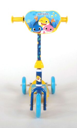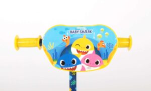 Baby Shark 10 inch Kinderfiets. Baby Shark doo doo doo doo, Baby Shark doo doo! Is uw kindje ook helemaal gek van de familie Shark en het welbekende liedje? Dan is deze step in stijl van Baby Shark iets voor hem of haar! Met deze step leert uw kind evenwicht: dit is behulpzaam bij het leren fietsen. Wij adviseren om uw kind een beschermende helm te laten dragen. Zoefff, daar ga je!