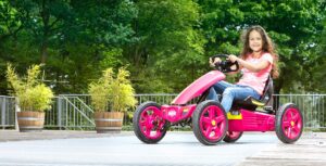 De BERG Rally Pearl is een met de spannende kleurencombinaties en de compacte vorm een echte eye-catcher in de buurt! De skelter heeft een kleine draaicirkel, waardoor de skelter heel wendbaar en manoeuvreerbaar is.De Rally Pearl is uitgerust met het BFR-systeem. Met het BFR-systeem kan je vooruit rijden, remmen, maar ook achteruit rijden door simpelweg voor- en achteruit te trappen. De Rally is uitgevoerd met 4 luchtbanden waarmee je geruisloos en comfortabel kan rondrijden. Samen met de schommel-as maakt dit de skelter stabiel en veilig.De Pearl is geschikt voor kinderen van 4 t/m 12 jaar.•Door het BFR-systeem kun je met de pedalen remmen, maar ook direct na stilstand achteruit rijden.•Uitgevoerd met oerdegelijke luchtbanden voor geruisloos en comfortabel rijgemak.•Stabiel en veilig door de schommel-as•Stoel en stuur zijn beide verstelbaar.•Geschikt voor kinderen van 4 tot 12 jaar.•Met de BERG Junior Trailer, Tandem Trailer L of andere accessoires maak je de Rally nóg leuker