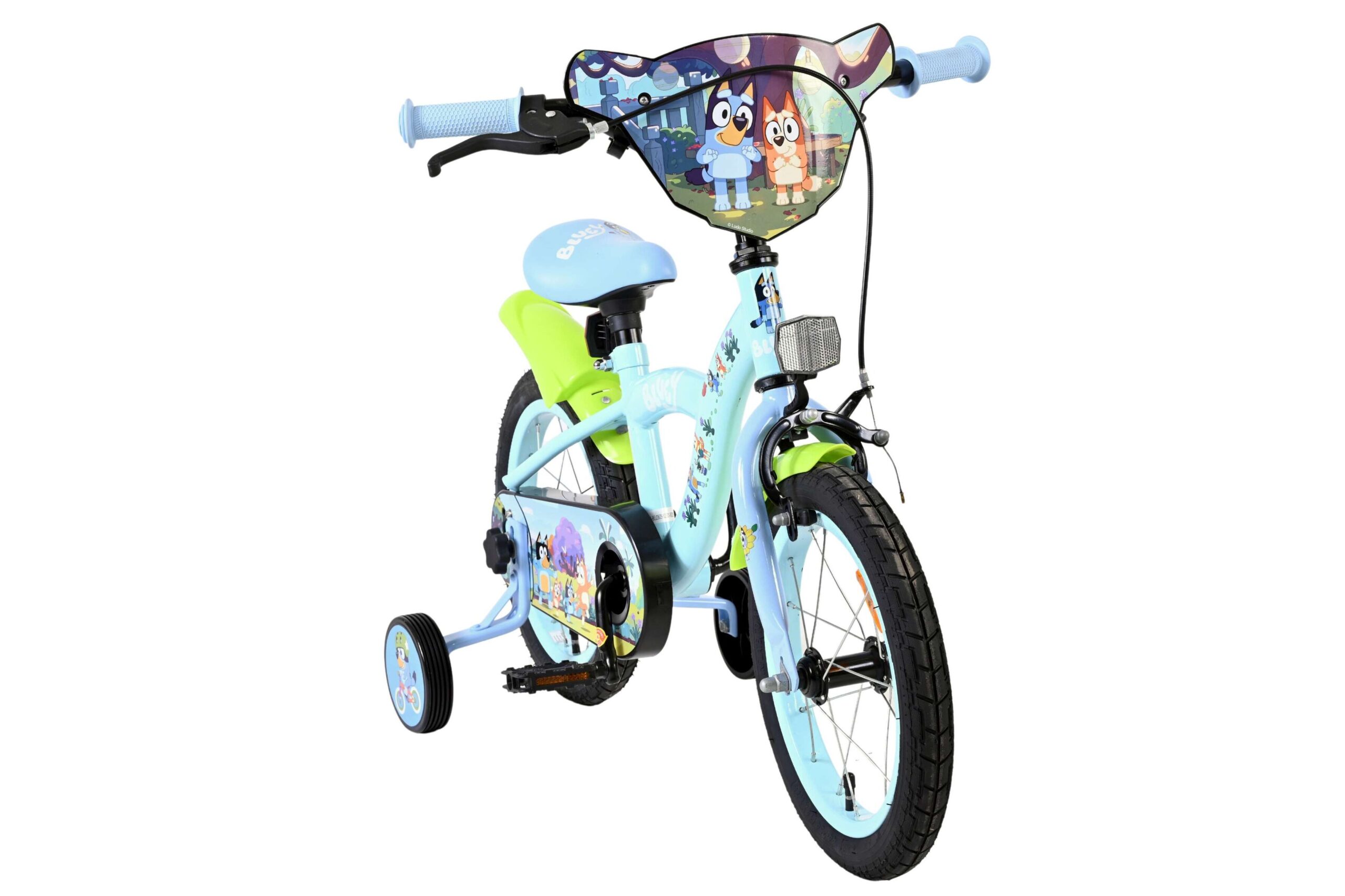 Voor kleine avonturiers is er de 14 inch Bluey kinderfiets van Volare – dé ideale fiets voor kinderen die klaar zijn om zelfverzekerd de wereld te verkennen. De vrolijke lichtblauwe kleur in combinatie met de opvallende neon groene spatborden geeft deze fiets een speelse en frisse uitstraling, perfect passend bij de energieke stijl van Bluey.