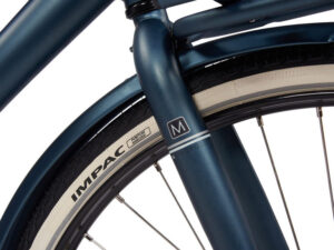 Maar deze uitvoering is boven alles een echte Metropolis. Dus de kenmerkende stalen spatborden met massieve spatbordstangen, sterke kunststof kettingkast, oversized dubbele poot standaard en een oversized voordrager.