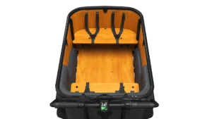 De Cangoo Buckle Up elektrische bakfiets combineert robuustheid met comfort, perfect voor het vervoeren van je kinderen of boodschappen in de stad. Met vier zitplaatsen in de bak biedt deze fiets volop ruimte voor het hele gezin. En ookal heb je een volle bak, door de rechte zithouding houd je als fietser optimaal zicht op de weg. De bak is vervaardigd uit duurzaam hout en EPP (Expanded Polypropylene), terwijl het frame is gemaakt van lichtgewicht maar sterk aluminium, wat zorgt voor een solide en veilige rit. Daarnaast is de bakfiets voorzien van geïntregeerde koplampen waardoor je goed opvalt in het verkeer.