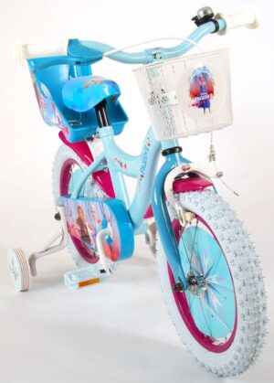 Disney Frozen 2 kinderfiets 14 inch. De Disney Frozen film is onder alle meisjes super populair. Volare heeft nu ook een hele mooie Disney Frozen 2 meisjesfiets-lijn gemaakt. In prachtige kleurstelling zacht blauw met poppenzitje achter, mandje voor. Met frisse witte bandjes. Welk meisje wil deze fiets nu niet? Strong Heart – Strong Bond. Official Licensed Disney Product. Top kwaliteit voor een lage prijs! Deze fiets is voor 95% afgemonteerd, dus bijna fietsklaar. Wel zo gemakkelijk!