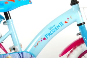 Disney Frozen 2 kinderfiets 14 inch. De Disney Frozen film is onder alle meisjes super populair. Volare heeft nu ook een hele mooie Disney Frozen 2 meisjesfiets-lijn gemaakt. In prachtige kleurstelling zacht blauw met poppenzitje achter, mandje voor. Met frisse witte bandjes. Welk meisje wil deze fiets nu niet? Strong Heart – Strong Bond. Official Licensed Disney Product. Top kwaliteit voor een lage prijs!