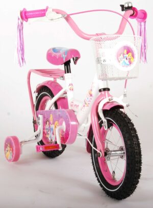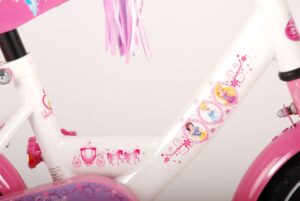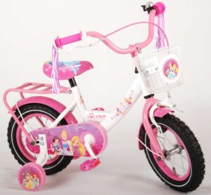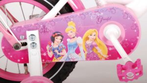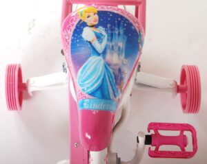 Disney Princess 12 inch meisjesfiets. Elk meisje heeft wel eens de film Princess of Assepoester van Walt Disney gezien. Elk meisje wil dan ook een echte Princess zijn, wat zeker gaat lukken op deze nieuwe mooie Disney Princess kinderfiets. Met stevige zijwieltjes en metalen mandje voor en slingertjes aan de handvatten. Disney Official Licensed Product