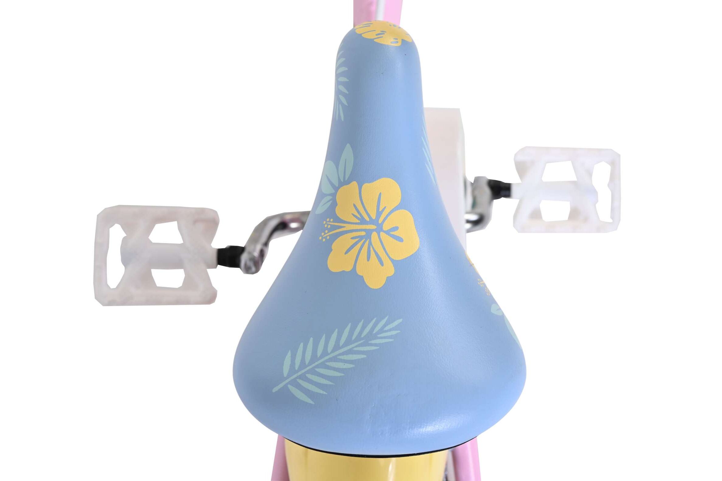Veiligheid staat voorop! Daarom heeft deze gave fiets twee handremmen (geen terugtraprem) en afneembare zijwieltjes. Daarnaast heeft de fiets reflectoren in de wielen voor- en achterop de fiets. Ook aan het comfort is gedacht. De mooie roze Stitch fiets met Crèmekleurige en tropische details is voorzien van een mandje. Om zo lang mogelijk van de fiets te kunnen genieten zijn het zadel en stuur in hoogte verstelbaar.