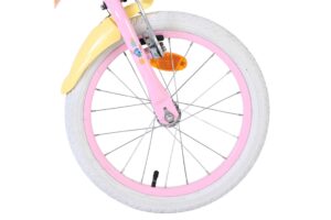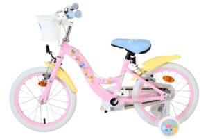 De Disney Stitch 16 inch kinderfiets is een echte blikvanger! Met haar vrolijke lichtroze frame en zonnig gele spatborden brengt deze fiets meteen een glimlach op ieders gezicht. Het leuke mandje voorop maakt de fiets extra speels en ideaal om favoriete spulletjes mee te nemen.