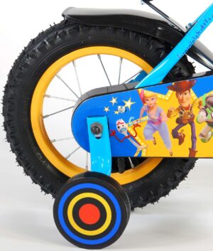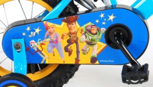 Disney Toy Story 12 inch kinderfiets. The toys are back in town! Dit jaar komt Disney met een vierde deel van deze geweldige film. Speciaal voor alle fans van Buzz Lightyear, Woody en Mr. Potatohead heeft Volare daarom een schitterende Toy Story fiets ontworpen. De fiets is helemaal in de stijl van deze film met vrolijke kleuren en mooie stickers. De fiets heeft zijwieltjes om snel te kunnen leren fietsen. Met de bidonhouder heeft uw kind altijd wat te drinken bij de hand! Verder heeft de fiets een handrem en zijn stuur- en zadelhoogte verstelbaar. Een echte aanrader dus! Vroemmm, daar gaat uw kind, op avontuur!