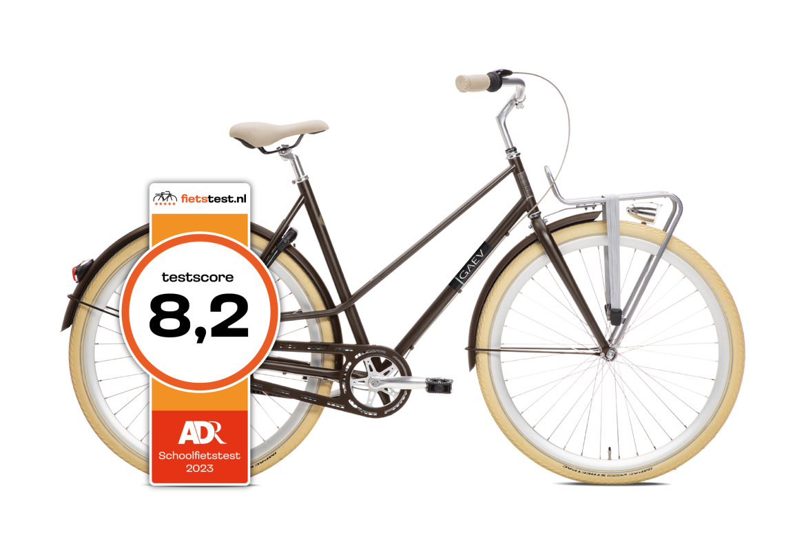 Beloond met een testscore van 8,2 bij de AD Schoolfietstest 2023. De Gaev gaat echt terug naar het pure fietsen van de jaren zeventig: staal frame, strak design en een fijne zithouding. Maar laat je niet op het verkeerde been zetten door het eenvoudige design en het vriendelijke prijskaartje. De Gaev heeft een prima afmontage met de KMC ketting, de uitstekende Spanninga verlichting en de degelijk meegelakte spatborden en kettingkast.