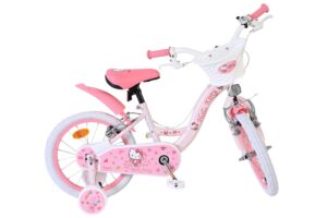 De Hello Kitty 16 inch kinderfiets in roze is een echte blikvanger voor kleine fans van Hello Kitty. Met de vrolijke details en het schattige design is elke rit naar school of door de buurt een feestje.