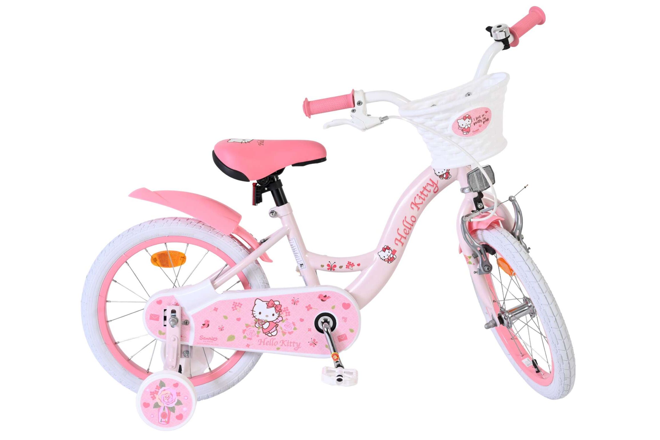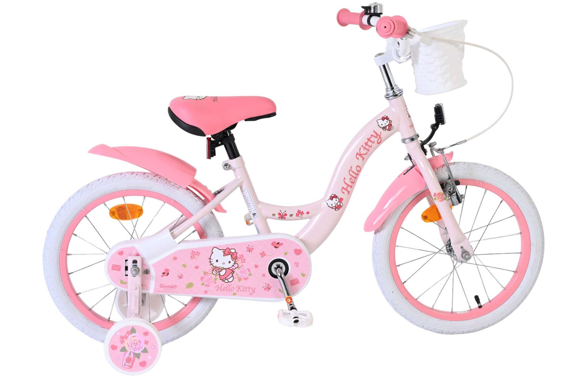 De Hello Kitty 16 inch kinderfiets in roze is een echte blikvanger voor kleine fans van Hello Kitty. Met de vrolijke details en het schattige design is elke rit naar school of door de buurt een feestje.