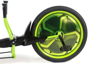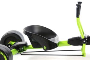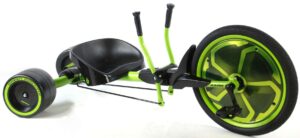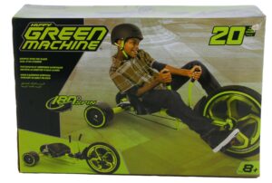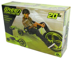 De Green Machine 20 inch is een te gekke driewieler. Met zijn 180° rotaties en sliders is de Green Machine een legende onder de driewielers. Met de twee hendels stuur je jezelf door alle bochten en maak je te gekke wendingen en slidings. Het 20 inch rubberen voorwiel met metalen spaken en de gladde achterbanden maken allerlei ultieme rotaties mogelijk en zorgen voor non-stop plezier. Alleen het voorwiel is een luchtband. De verstelbare kuipstoel geeft goede zijdelingse steun tijdens de spins. De combinatie van materialen die gebruikt zijn voor deze Green Wheel staan garant voor een laag gewicht en een duurzame constructie, zodat je nog langer plezier kunt hebben van de driewieler. De Green Machine 20 inch is geschikt voor kinderen tussen de 8+ jaar.