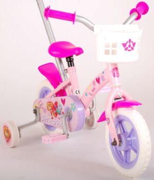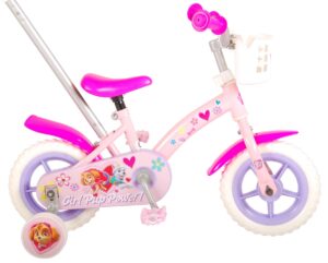 Paw Patrol 10 inch kinderfiets. Paw Patrol is de super leuke en spannende serie, speciaal voor de jongste meisjes. Deze 10 inch kinderfiets is helemaal in de stijl van deze special. Met de afneembare duwstang kan het kind begeleid worden door de ouders. De zijwieltjes zijn afneembaar, om snel te kunnen leren fietsen. Deze fiets is daardoor ideaal om van begin tot praktijk te leren fietsen. Doordat stuur- en zadelhoogte aanpasbaar zijn, kunt u uw kind steeds opnieuw uitdagen op gebied van balans en motoriek. In het handige fietsmandje kan uw kind haar spulletjes meenemen. Verder heeft de fiets een gesloten kettingkast, EVA zachtprofiel wielen en is hij vooruit- en achteruit rijdend. Met deze fiets kan ieder kindje zo goed fietsen, waardoor het voelt alsof ze dezelfde krachten hebben als de Paw Patrol Pups! Vroemmm!