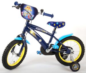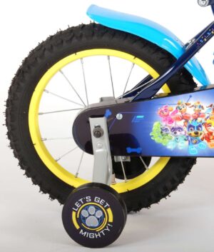 Paw Patrol Mighty Pups kinderfiets 14 inch. Paw Patrol Mighty Pups is de super leuke en spannende special van de Paw Patrol serie, speciaal voor de jongsten. Deze Paw Patrol 14 inch jongensfiets is werkelijk een topper, helemaal in de Paw Patrol kleuren met schitterende stickers en met een super mooi, stoer en modern frame. De fiets heeft afneembare zijwieltjes om snel te kunnen leren fietsen en de kettingkast is ter bescherming van de kleine vingertjes gesloten. Met deze fiets kan ieder kindje zo snel fietsen, waardoor het voelt alsof ze dezelfde krachten hebben als de Mighty Pups! Vroemmm, daar ga je! Paw Patrol Official Licensed Product. Deze fiets is voor 95% afgemonteerd, dus bijna fietsklaar. Wel zo gemakkelijk!