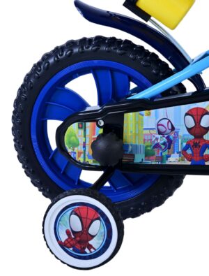 Veiligheid staat voorop! Daarom heeft deze gave fiets een doortrapsysteem met een handrem, een gesloten kettingkast en afneembare zijwieltjes. Maar ook aan het comfort is gedacht! De mooie blauwe Spidey fiets met gele accenten heeft een zacht zadel, een toeter op het stuur, en een super stevig frame. Om zo lang mogelijk van de fiets te kunnen genieten zijn het zadel en stuur in hoogte verstelbaar. Kortom; een topkwaliteit fiets voor een scherpe prijs!