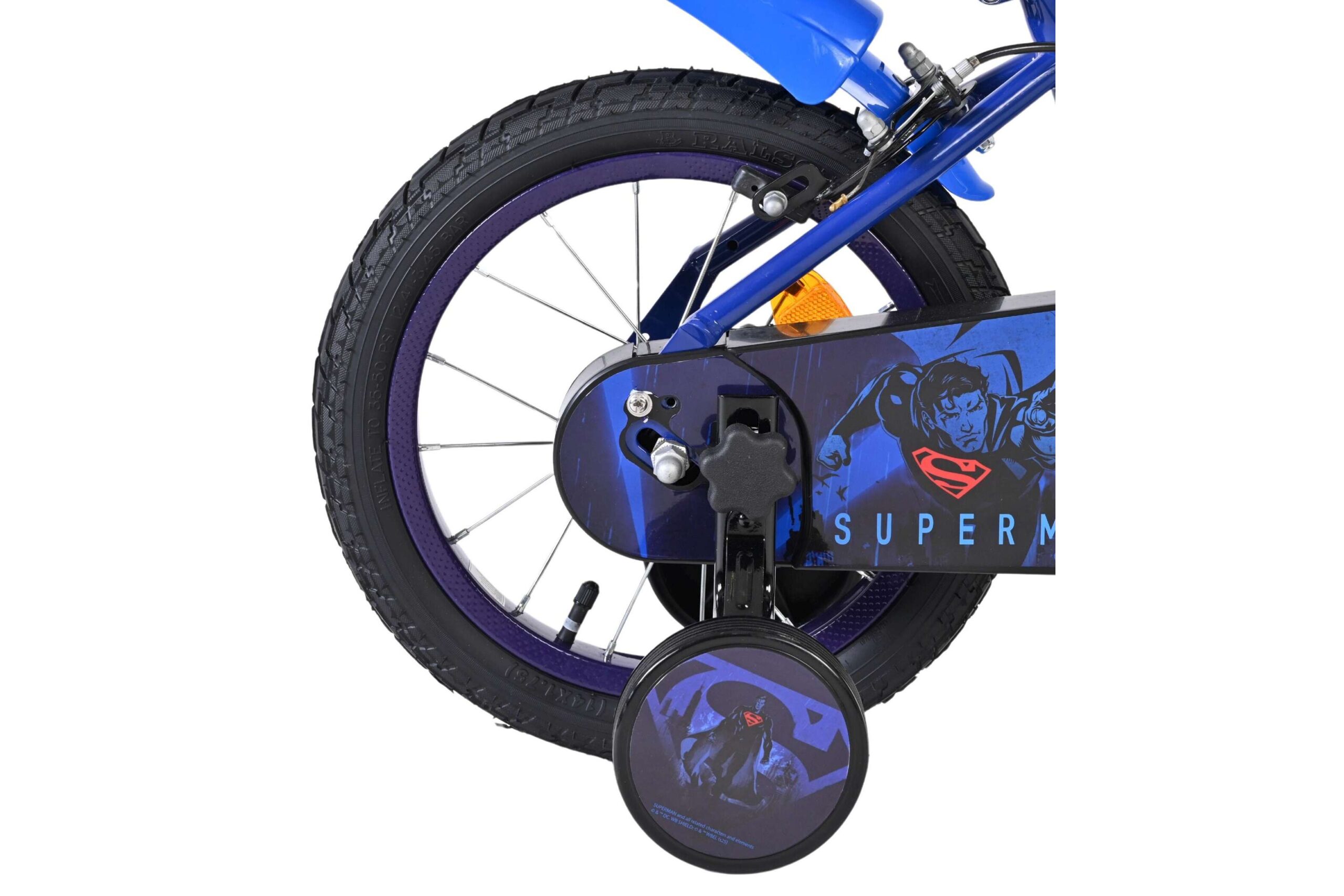 De Superman 14 inch kinderfiets is de perfecte fiets voor kleine superhelden die graag op avontuur gaan! Deze stoere fiets in donkerblauw heeft een krachtig Superman-ontwerp en een coole voorplaat met het iconische Superman-logo — ideaal voor fans van de Man of Steel.