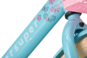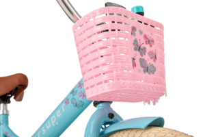 Met slingers die wapperen in de wind en samen met haar pop gaat je dochter op pad met deze schitterende Supersuper Little Miss 20 inch Kinderfiets Meisjes Turquoise! Deze turquoise uitvoering is magisch mooi! Met een prachtig vlindermotief en roze elementen ziet dit fietsje er fantastisch uit. De Supersuper Little Miss 20 inch Turquoise valt vast en zeker in de smaak bij je dochter! Naast het poppenzitje en het handige fietsmandje aan het stuur is deze fiets ook voorzien van reflectoren, een fietsbel, veilige gesloten kettingkast en een terugtraprem. De Supersuper Little Miss 20 inch Turquoise ziet er dus niet alleen super uit, de fiets is ook heel veilig! Perfect toch? En dat is nog niet alles, want ook een in hoogte verstelbaar stuur en zadel ontbreekt niet op deze Supersuper Little Miss 20 inch. Een hoge kwaliteit meisjesfiets voor een betaalbare prijs: dat is de Supersuper Little Miss 20 inch! The world is #supersuper!