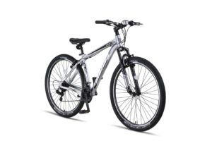 Kleur: Grijs Wielmaat: 29” Framemaat: 46 Frame: Aluminium Versnelling: Shimano 21 speed Remmen: V-brakes Verlichting: Niet aanwezig Voorvork: Verende voorvork Stuurpen: Verstelbare stuurpen Velgen: Dubbelwandig aluminium Standaard: Zijstandaard