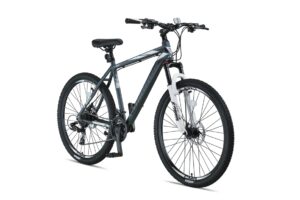 Umit Mirage Mountainbike 27,5 inch Schijfremmen Antraciet/White 21v – Past perfect bij avontuurlijke ritjes! Het frame is van hoge kwaliteit en gemaakt van aluminium. Hierdoor weegt de fiets niet veel en is deze goed te controleren. Ook is dit materiaal bestand tegen roest door nattigheid zoals regen en modder. Met de 21 versnellingen is het altijd makkelijk schakelen naar de juiste trapzwaarte te schakelen. Hierdoor is comfort onderweg gegarandeerd. Voor elk type terrein is een juiste versnellingen te vinden! De velgen bestaan uit dubbelwandig aluminium en zijn daardoor zeer stevig. Ook beschikt deze mountainbike over een verende voorvork. Hiermee worden de meeste schokken goed opvangen zodat u onderweg aangenaam kunt rijden. Op de fiets zit geen verlichting, let hierop wanneer u de fiets in het donker wilt gebruiken. Voor de Umit Mirage is elk type terrein te bedwingen!