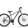 Kleur: Antraciet Wielmaat: 27,5” Framemaat: 46 Frame: Aluminium Versnelling: Shimano 21 speed Remmen: Hydraulische schijfrem Verlichting: Niet aanwezig Voorvork: Verende voorvork Stuurpen: Verstelbare stuurpen Velgen: Dubbelwandig aluminium Standaard: Zijstandaard
