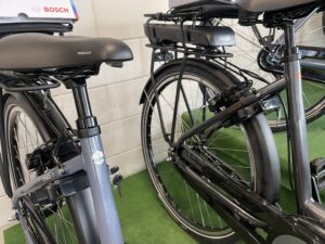 | Uitrusting: | verende voorvork, verende zadelpen, ringslot, systeem bagagedrager, kettingscherm, Elektronische duwhulp, spatborden |