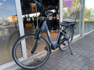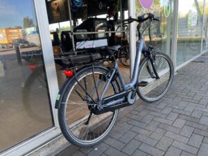 + Uitrusting:verende voorvork, verende zadelpen, ringslot,systeem bagagedrager, kettingscherm, Elektronische duwhulp, spatborden