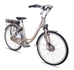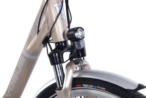 De Vogue Premium met 7 versnellingen en qua design gericht op vrouwen, is een moderne uitvoering van de e-bike. Deze elektrische fiets heeft een echt premium-uiterlijk. Stijlvol design is terug te zien in alle onderdelen van de fiets. De goede remmen voor zowel voor als achter zijn Shimano Rollerbrakes. De zadelpen en voorvork zijn verend, waardoor je jezelf eenvoudig verplaatst over onbegaanbare wegen, en toch altijd comfortabel op je fiets zit.