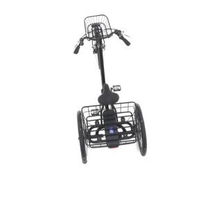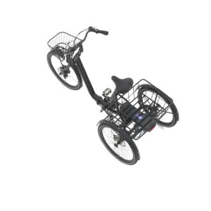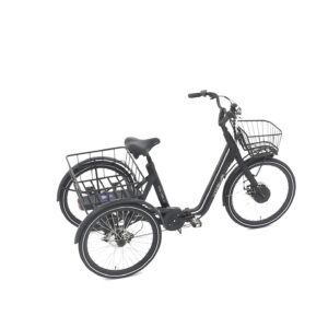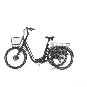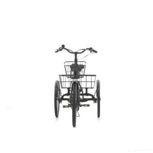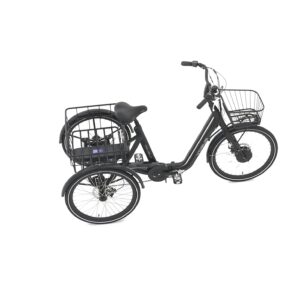 De Vogue Tri-Velo is een sportieve e-driewieler voor de doelgroep ouderen of mindervaliden. Deze driewieler beschikt over een stabiele wegligging met twee wielen achter, en één voor. De 7 speed Shimano derailleurversnelling geeft je genoeg mogelijkheden in combinatie met digitale ondersteuningen vanuit de motor. Het framemateriaal is aluminium en de kleur is matzwart of grijs. Zowel voor als achter is opbergruimte in de vorm van een mand. De maximale snelheid is 25 kilometer per uur, zeer geschikt voor de stedelijke én rurale omgeving.