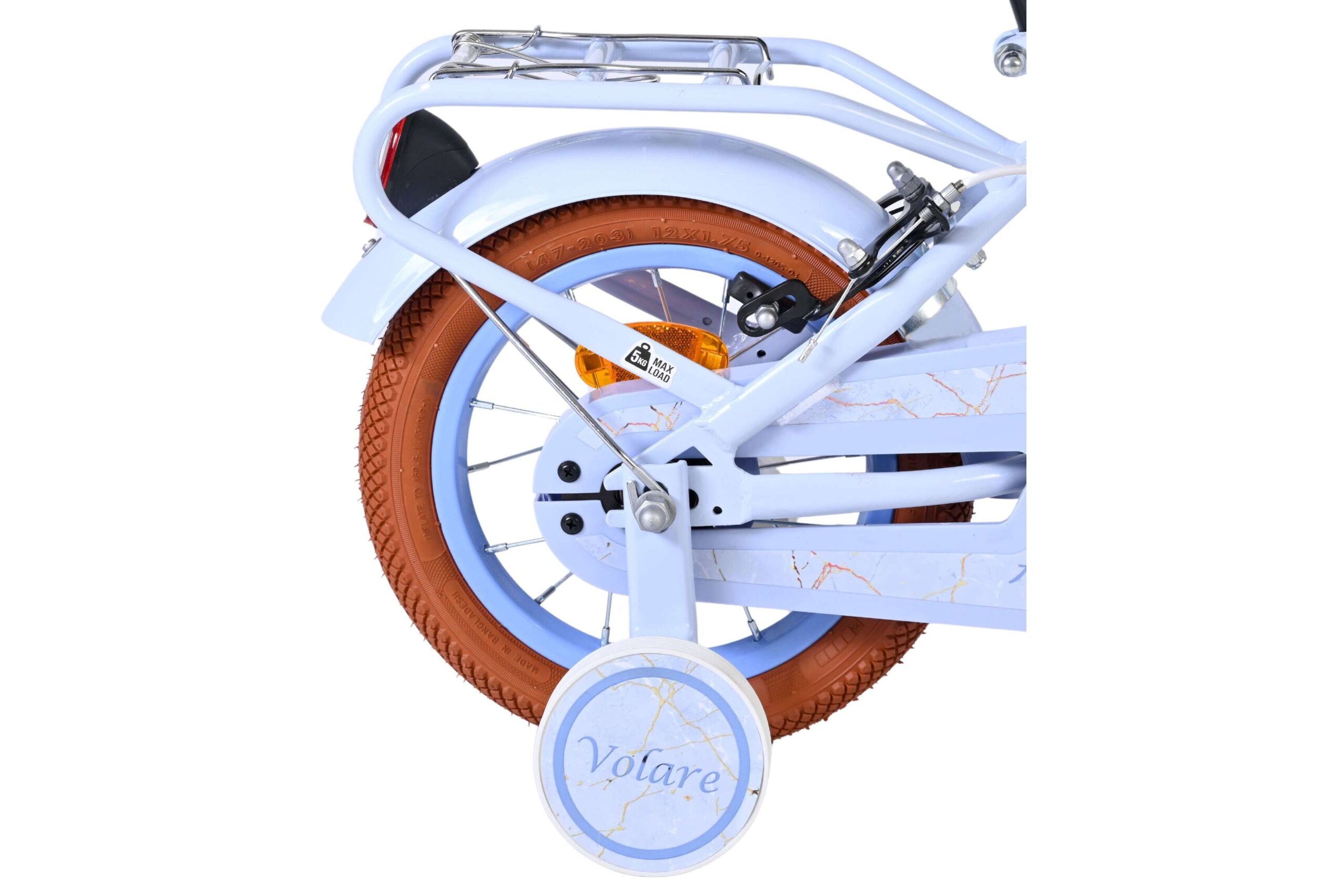 De Volare Ashley 12 inch kinderfiets is een vrolijke en comfortabele fiets die helemaal klaar is voor de eerste fietservaringen van je kind. Deze mooie blauwe fiets is uitgerust met twee handremmen (geen terugtraprem), waardoor je kind op een veilige en vertrouwde manier leert remmen. De afneembare zijwielen zorgen voor extra stabiliteit in het begin en kunnen eenvoudig verwijderd worden zodra je kind klaar is om zelfstandig te fietsen.